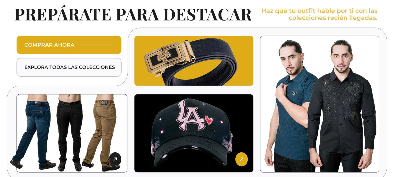 Nos enorgullece ofrecer productos Ăşnicos y exclusivos para aquellos que buscan estar a la vanguardia de la moda. Ofrecemos una amplia variedad de prendas, desde ropa casual, hasta calzado, gorras y perfumes.